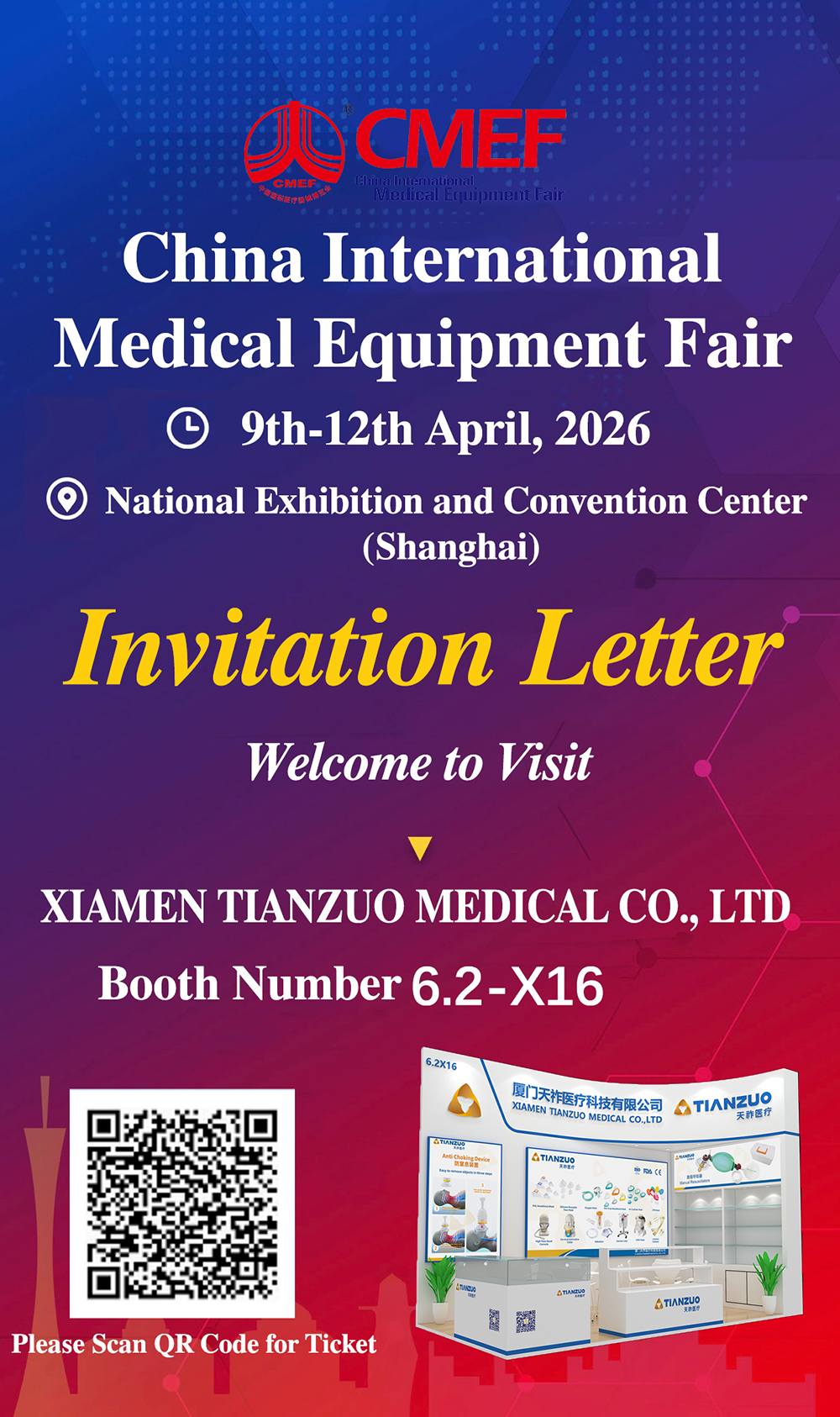 เรามีความยินดีเป็นอย่างยิ่งที่จะเรียนเชิญท่านเข้าร่วมงาน งานมหกรรมอุปกรณ์การแพทย์นานาชาติจีน ครั้งที่ 93 (CMEF)—หนึ่งในงานแสดงสินค้าทางการแพทย์ที่มีอิทธิพลมากที่สุดในเอเชีย และเป็นแพลตฟอร์มสำคัญสำหรับนวัตกรรมและการค้าทางการแพทย์ระดับโลก