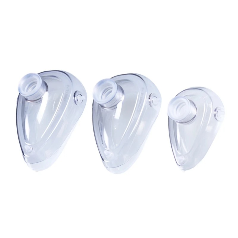 หน้ากากดมยาสลบแบบฆ่าเชื้อด้วยความร้อนสูง สามารถทนต่อการฆ่าเชื้อด้วยความร้อนสูงถึง 40 รอบ โครงสร้างขอบนุ่มช่วยให้ผู้ป่วยรู้สึกสบายสูงสุดและปิดสนิทแน่นหนา ขณะที่หน้ากากโปร่งใสช่วยให้สามารถตรวจสอบผู้ป่วยได้อย่างต่อเนื่อง มาพร้อมกับหัวต่อมาตรฐานขนาด 22 มม. และ 15 มม. จึงสามารถใช้งานร่วมกับวงจรการหายใจและอุปกรณ์ทางการแพทย์อื่นๆ ที่เกี่ยวข้องได้อย่างสมบูรณ์