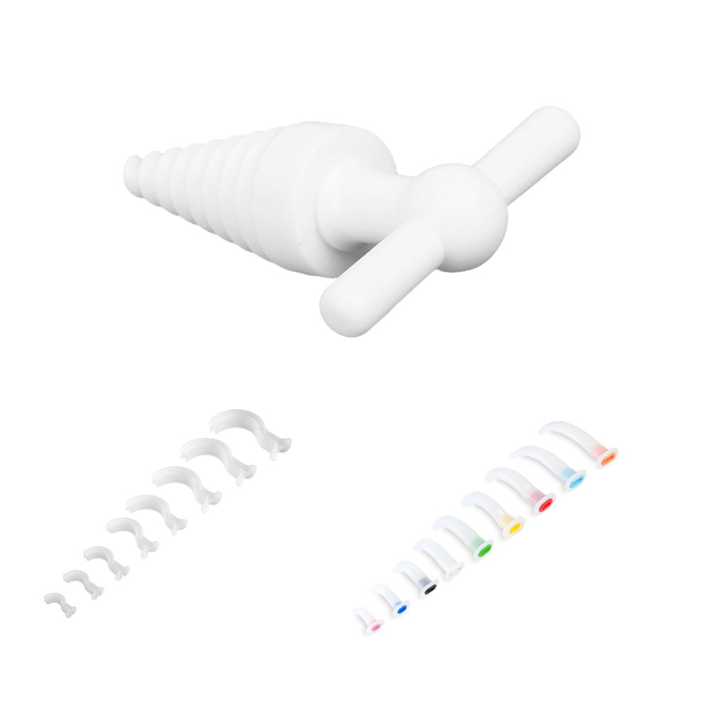 Features a robust support structure engineered to force and maintain the mandible in an open position, with a hollow central channel compatible with oropharyngeal airways. During oral surgery, emergency intubation, or dental procedures, it is placed between the patient's teeth to keep the oral cavity open while enabling unobstructed airway access.
